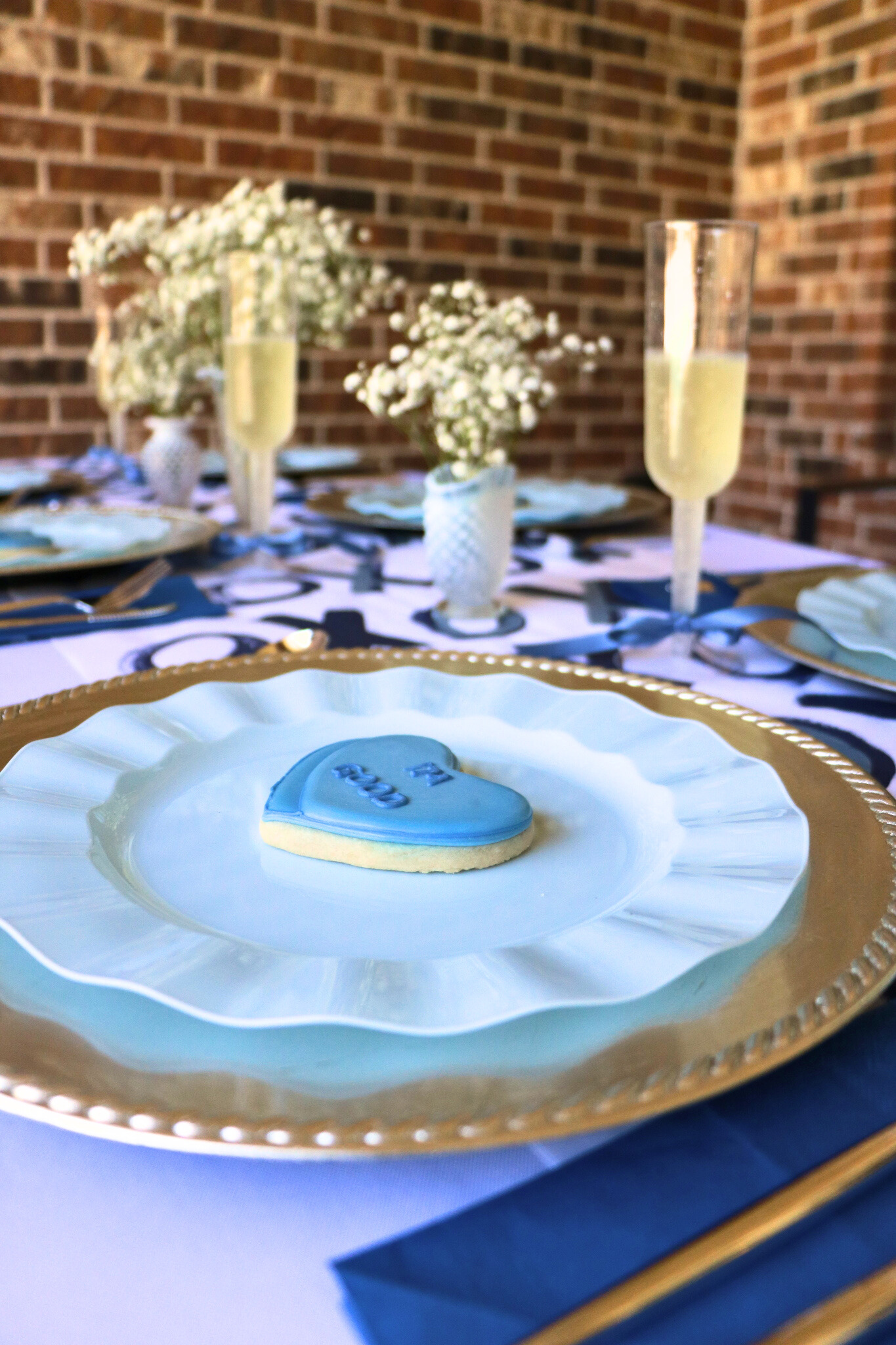 Blue might not be the obvious choice, but that’s exactly why it works. It feels fresh, modern, and a little unexpected—just like the best gatherings. Paired with classic Valentine’s elements (XO’s, champagne, sweets), it creates balance without leaning into cliché.