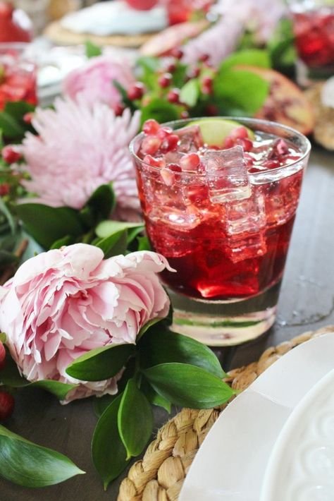 Inspired by the beautiful ruby-red hue of this cocktail, we styled a holiday tablescape that ties perfectly into the pomegranate theme.